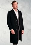 Single breasted, fly front, centre vent, satin lined, hand stitched edge. Centre back length at size 40R = 106cm