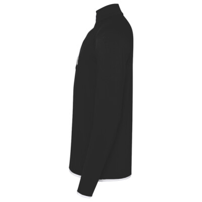 AWDis' own CoolFit blended fabric containing elastane that provides stretch for comfort and a great fit, tight fit, reflective tab on back of neck helps keep ear phone cords in place, self-fabric contrast colour binding at zip, cuffs and hem, raglan sleeve design creates ease of movement, ½ zip with stand-up collar for warmth, chin guard prevents irritation, simple tear off label makes it perfect for rebranding, UPF 30+ UV protection.